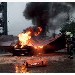 La manta ignífuga para coches SUV o similares ha sido especialmente diseñada para garantizar la máxima seguridad en caso de incendio de iones de litio. Está fabricada con un robusto tejido de fibra de vidrio con un revestimiento de silicona por ambas caras, que incluso resiste temperaturas extremas y protege de forma fiable contra las llamas y el humo.