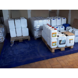 De poliéster recubierto de PVC(900 gr/m2).Resistente a los hidrocarburos y a la mayoría de los productos químicos