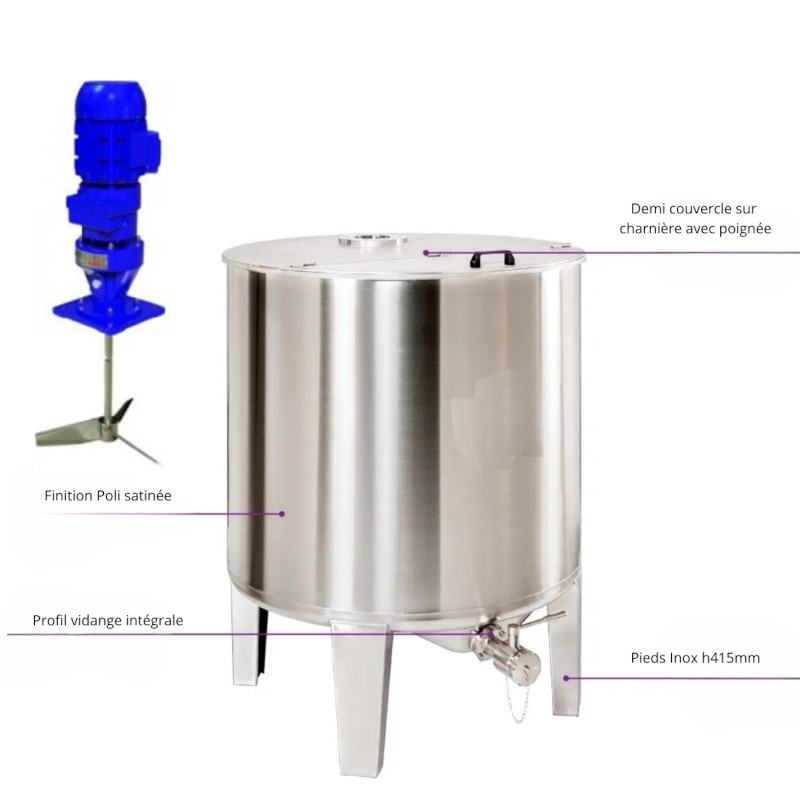 Depósito de acero inoxidable de 910 l con mezclador DF75